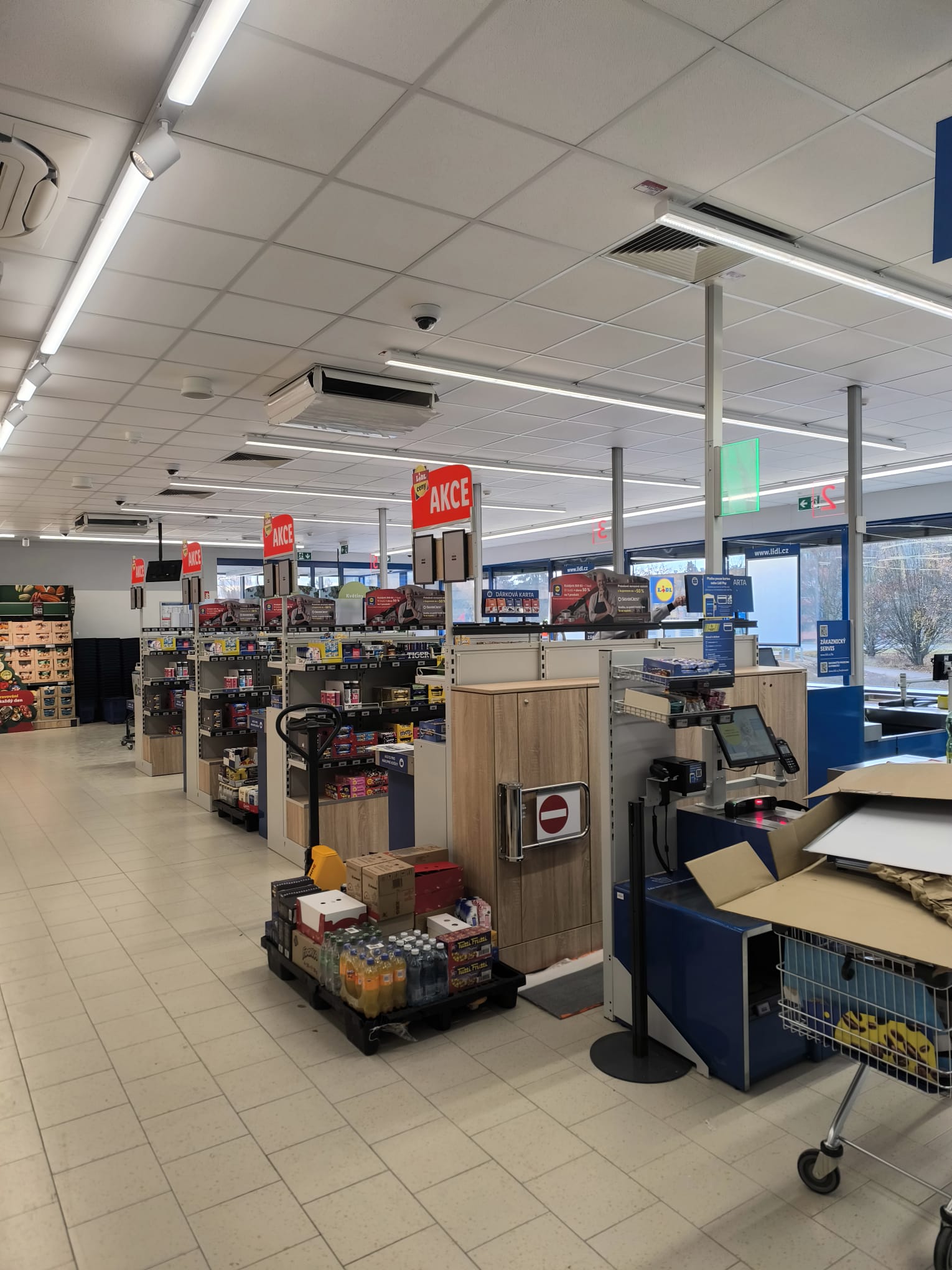 Součástí zakázky byla kompletní revitalizace prodejny, doplnění pekárny a výkupu lahví tak, aby objekt splňoval aktuální standardy prodejen Lidl.